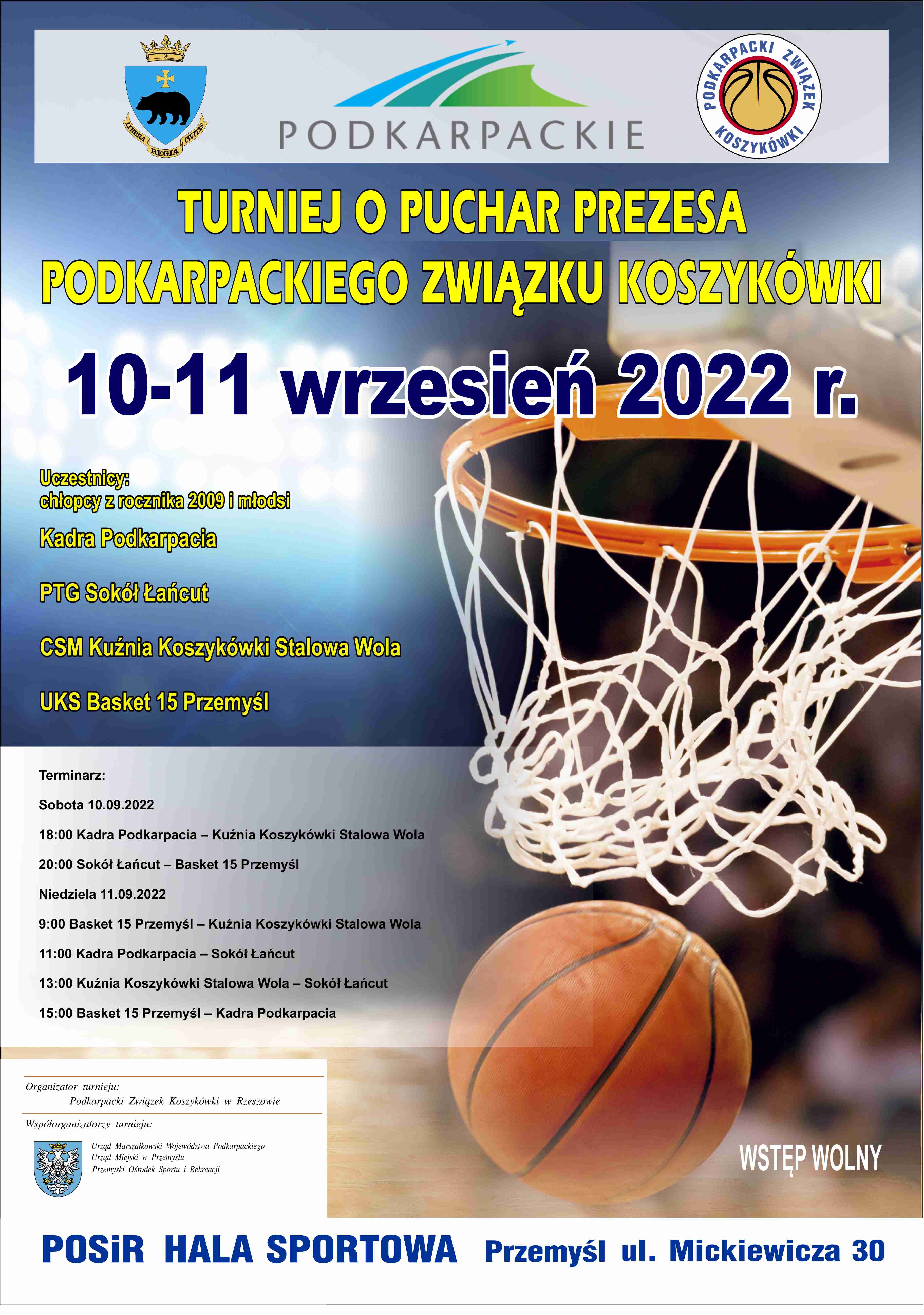 W dniach 10 i 11 września 2022 r. w hali POSiR w Przemyślu odbędzie się turniej koszykówki chłopców rozcznika 2009 i młodsi o Puchar Prezesa PZK